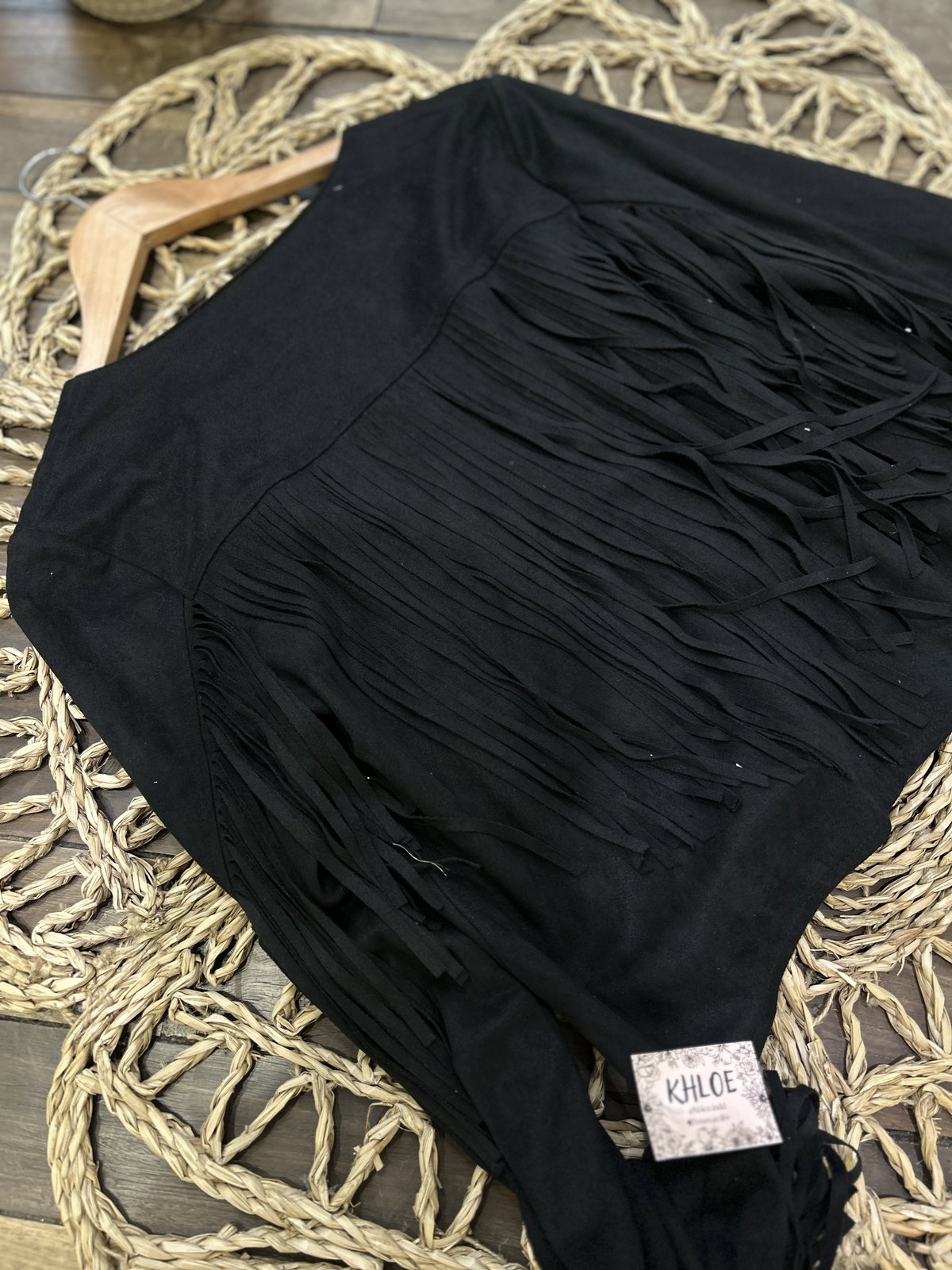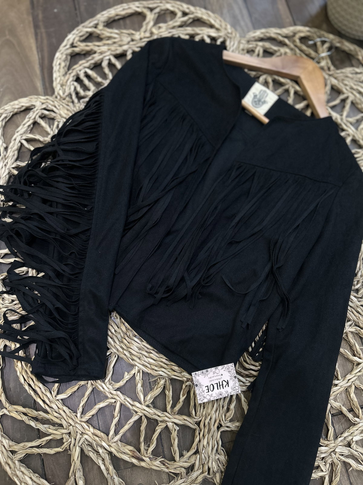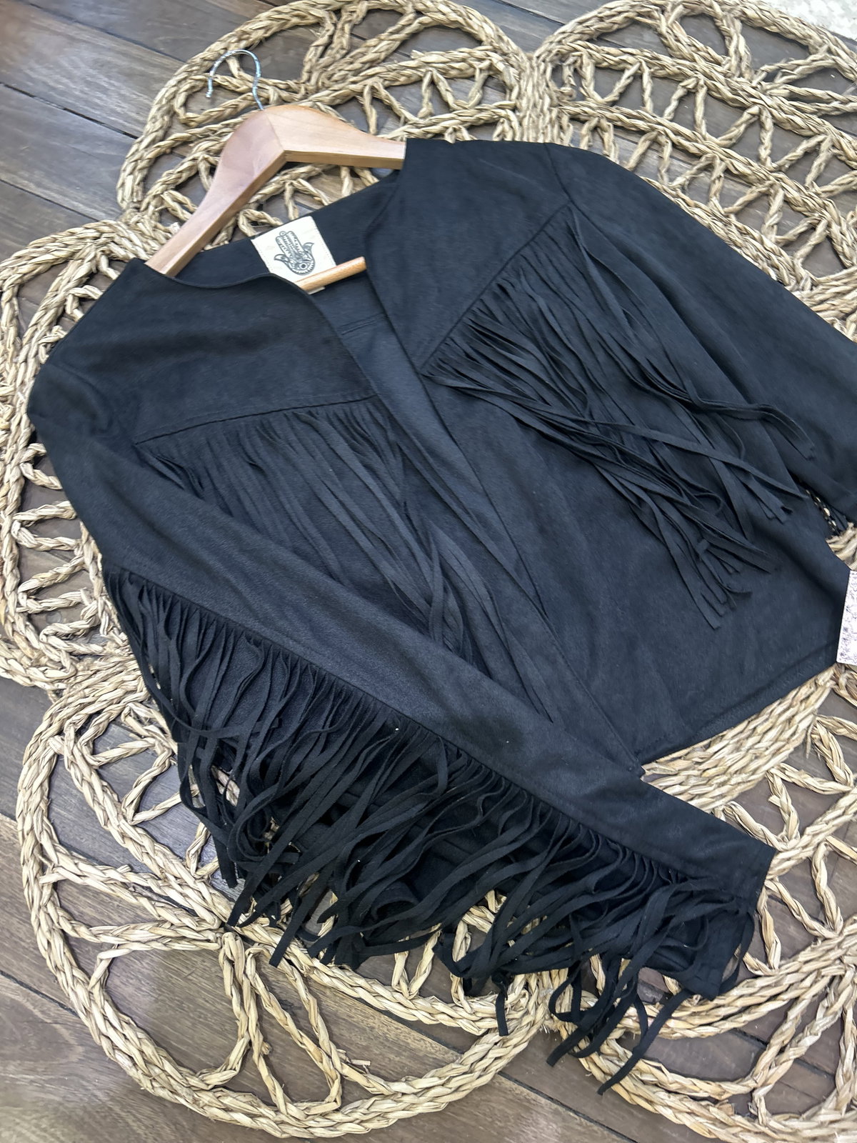 Dale un giro audaz y lleno de textura a tu guardarropa con nuestra Campera Boho. Esta chaqueta de gamuza sintética (suede) de color negro azabache es la definición del estilo boho-chic moderno, diseñada para quienes aman la moda con espíritu libre pero con un toque refinado.