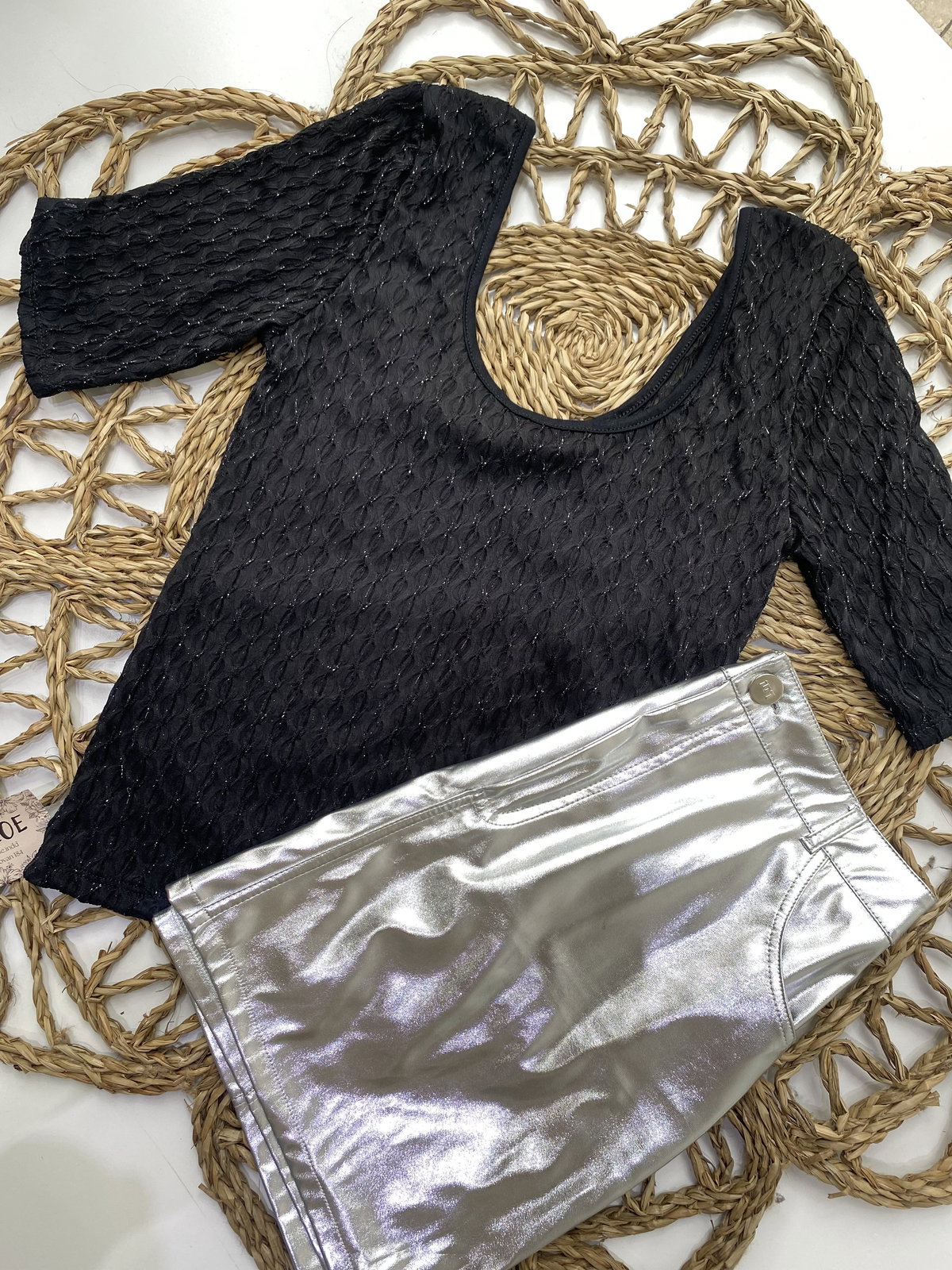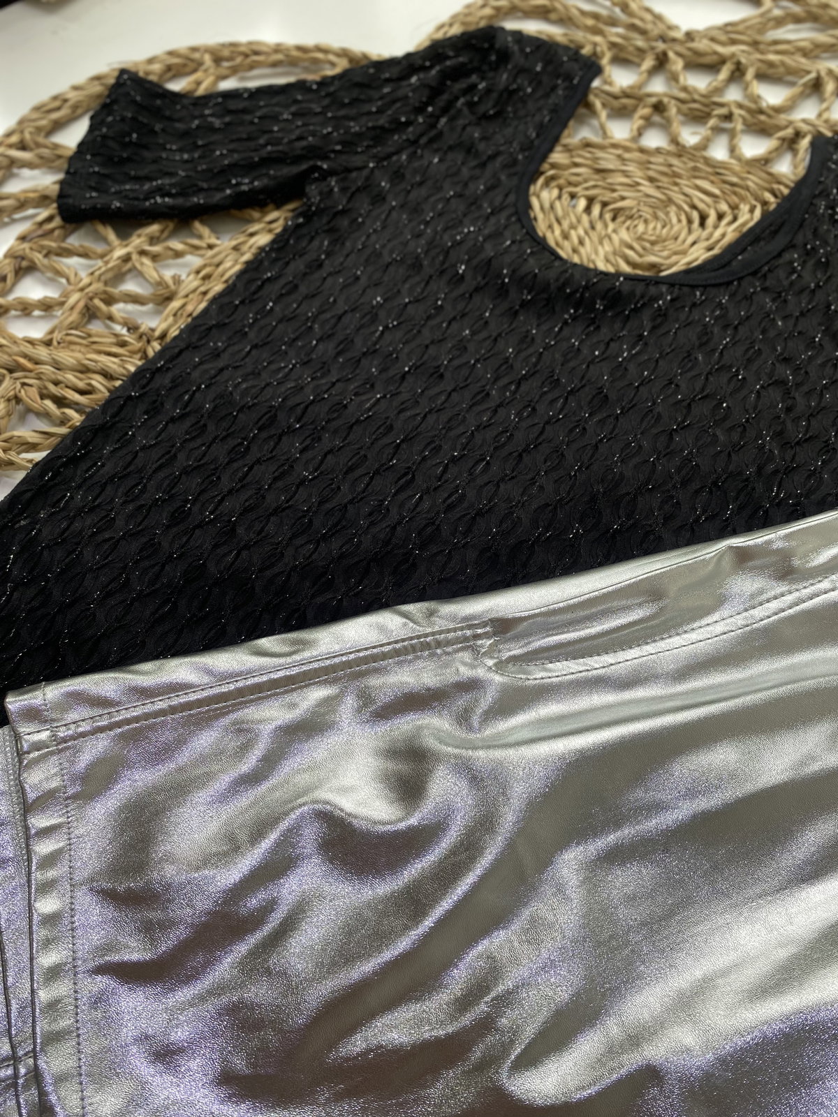 Blusa de microtul trenzado con destellos en plata. Talle único (M/L)