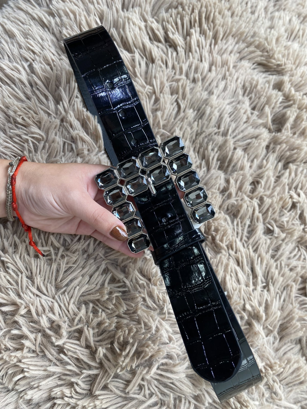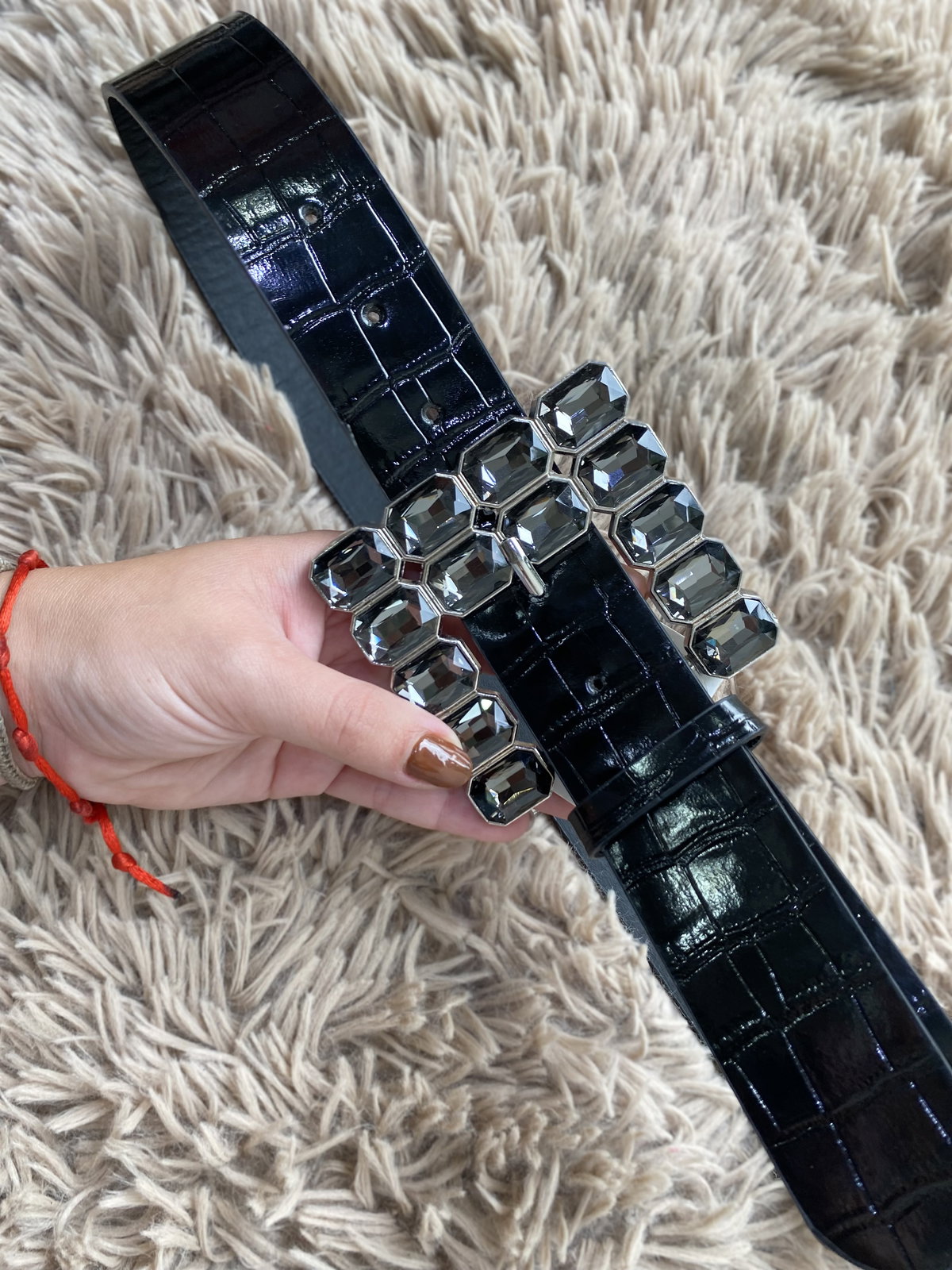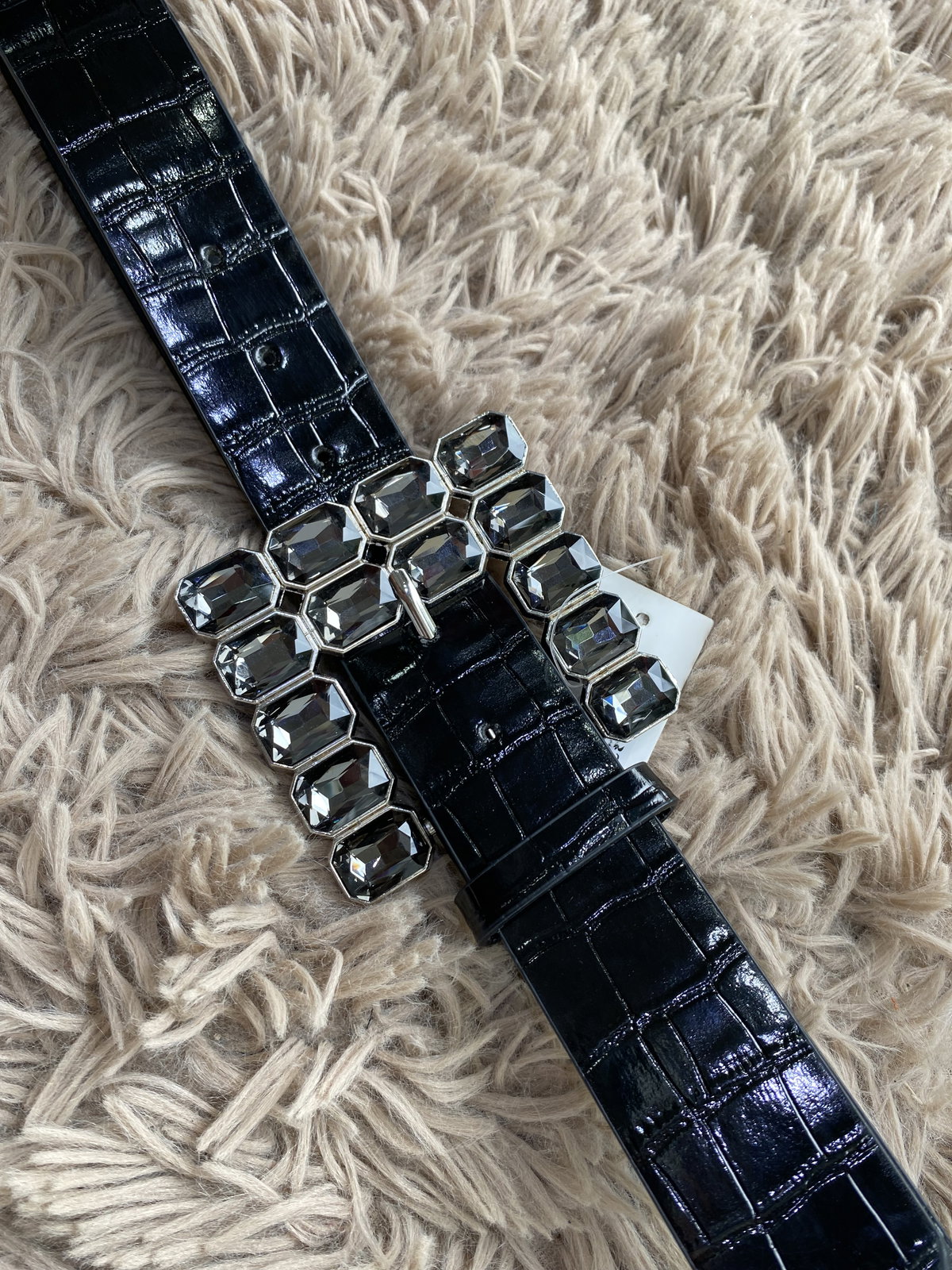 Cinturón de ecocuero de croco con hebilla de stras
