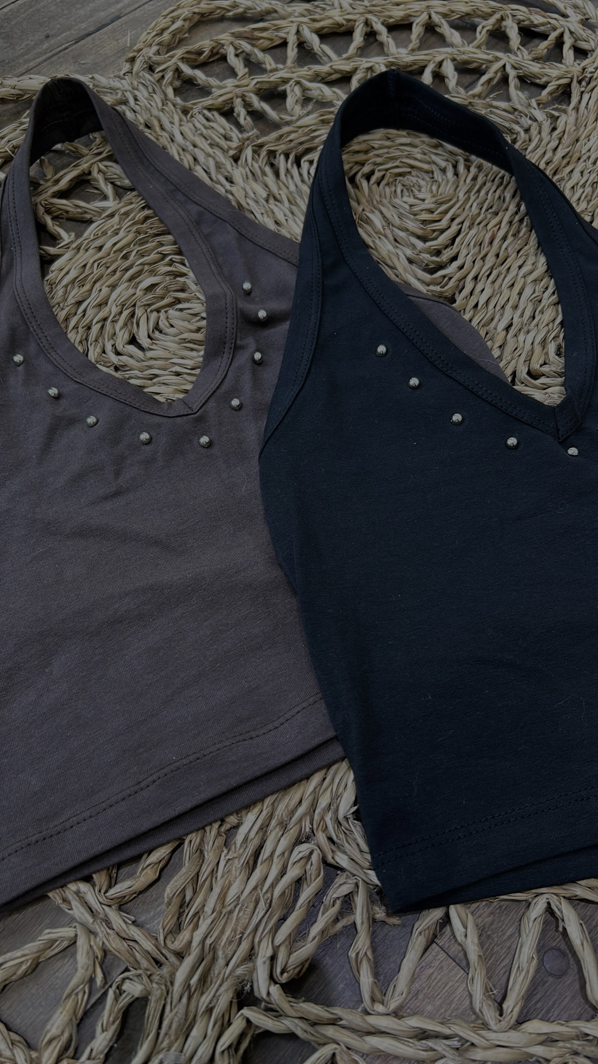 El básico con actitud que tu vestidor necesita. El Top Tachas combina la frescura y suavidad del algodón con un detalle de tachas plateadas en el escote que levanta cualquier look al instante.